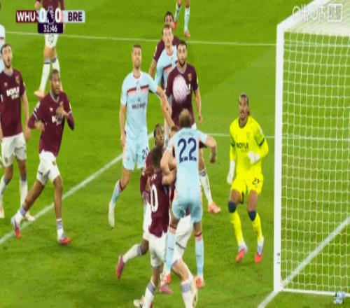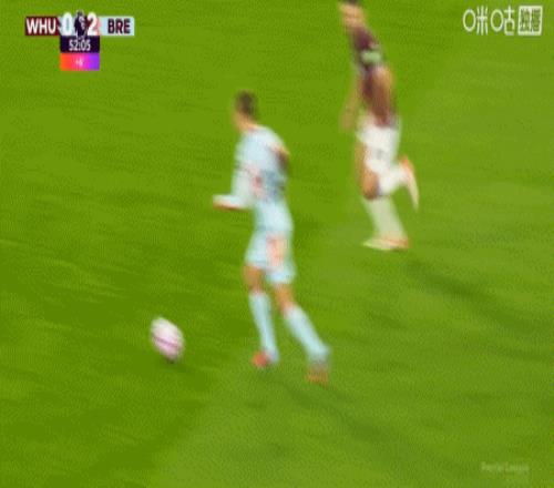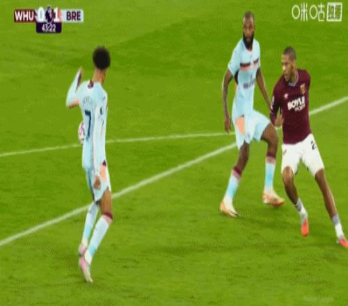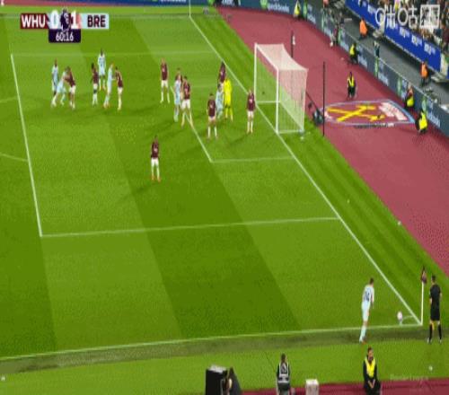 第43分钟,沙德助攻,蒂亚戈射门得分,布伦特福德1-0西汉姆联