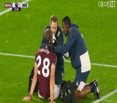 第21分钟,绍切克争顶将眼角撞破流血,队医上场为其治疗